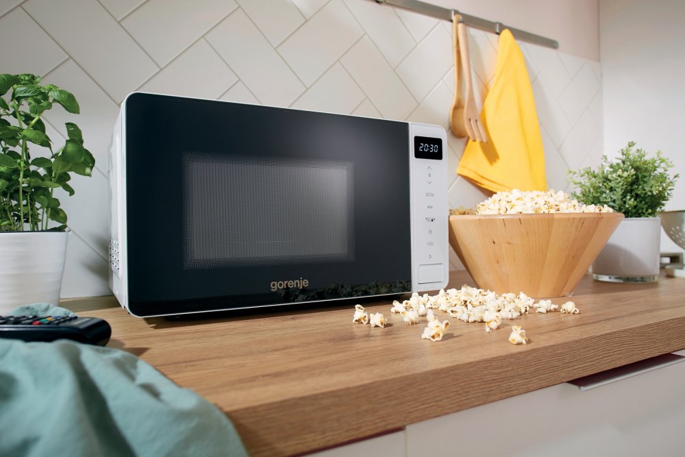 Мікрохвильова піч GORENJE MO 17 E1W з функцією SmartStart, яка дозволяє швидко підігріти їжу всього натисканням на кнопку. Налийте воду в тарілку, придатну для мікрохвильового приготування, поставте в піч і включіть програму.