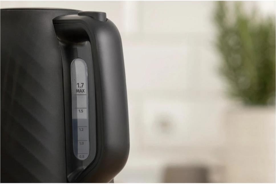 Дизайн чайника продуманий, теплий та підкреслює високу якість життя. Лампи ніжно підсвічують скло зсередини, тоді як неіржавна прикраса на підставці та нижній частині корпусу створює преміальний вигляд пристрою. Пристрій дуже зручно тримати за ручку. Вона ергонфомічна, завжди холодна та виглядає стильно, доповнюючи інтер’єр кухні.
