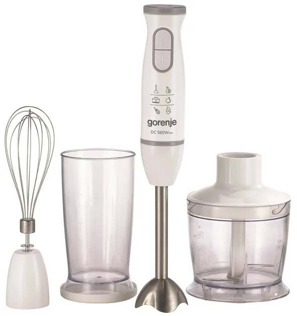 Блендер Gorenje HBC564QW оснащений однією насадкою, міні-подрібнювачем. Вона підходить для збивання рідких інгредієнтів. Також, вона має невелику ємність, всередині якої розміщені ножі, щоб змішувати невелику кількість продуктів. У комплекті також йде мірний стакан, розрахований на 500 мл. Також є насадка віночок для збивання рідких продуктів, які використовуються з різними цілями.