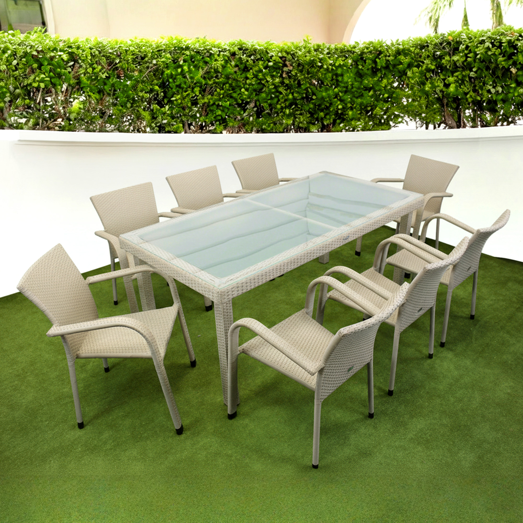 Комплект садових меблів Greengard Вермонт 180— елегантне та практичне рішення для облаштування зони відпочинку. Сучасний дизайн поєднує комфорт і функціональність, створюючи затишну атмосферу для сімейних обідів чи зустрічей на терасі, в альтанці або саду. Міцний металевий каркас із полімерним покриттям забезпечує надійність конструкції, а плетіння зі штучного ротанга вирізняється стійкістю до зовнішніх впливів та легкістю у догляді. Скляна стільниця додає комплекту витонченості та сучасного вигляду.