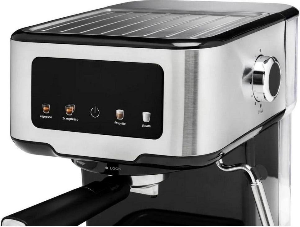 Кавоварка еспрессо Gorenje ESCM15CD - це ріжкова еспресо‑машина з потужністю 1100 Вт, що гарантує швидкий прогрів води. Тиск помпи до 15 бар дозволяє витягувати каву з багатою, стійкою кремою - важливий показник для якісного еспресо. Управління здійснюється за допомогою сенсорної панелі з дисплеєм, що спрощує вибір режимів і контролює процес приготування.