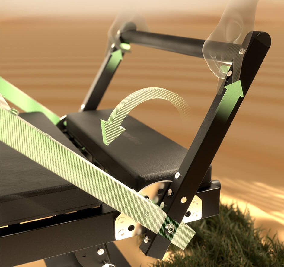 Після закінчення тренування, конструкцію можна легко скласти в компактну форму, перемістити на коліщатках і прибрати до стіни, де вона не заважатиме. Якісні матеріали та широкі можливості для тренувань роблять її машиною, яка дійсно має сенс у домашніх умовах і відкриває шлях до гнучкості без зайвого навантаження на суглоби.