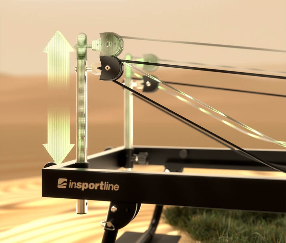 Пілатес-реформер inSPORTline Auraler. Його сильною стороною є розумна, стабільна і продумана до дрібниць конструкція. Міцний сталевий каркас з міцним покриттям, подвійна система опору, що складається з 4 пружин і 5 експандеров, сім положень опорної штанги і два положення підлокітників дозволяють налаштувати тренажер точно відповідно до ваших потреб. Рухома платформа має тихий і плавний хід, троси достатньо довгі для вправ руками і ногами, а зручна оббивка утримує тіло в правильному положенні. А якщо ви хочете додати динаміки, просто встановіть відбивну поверхню.