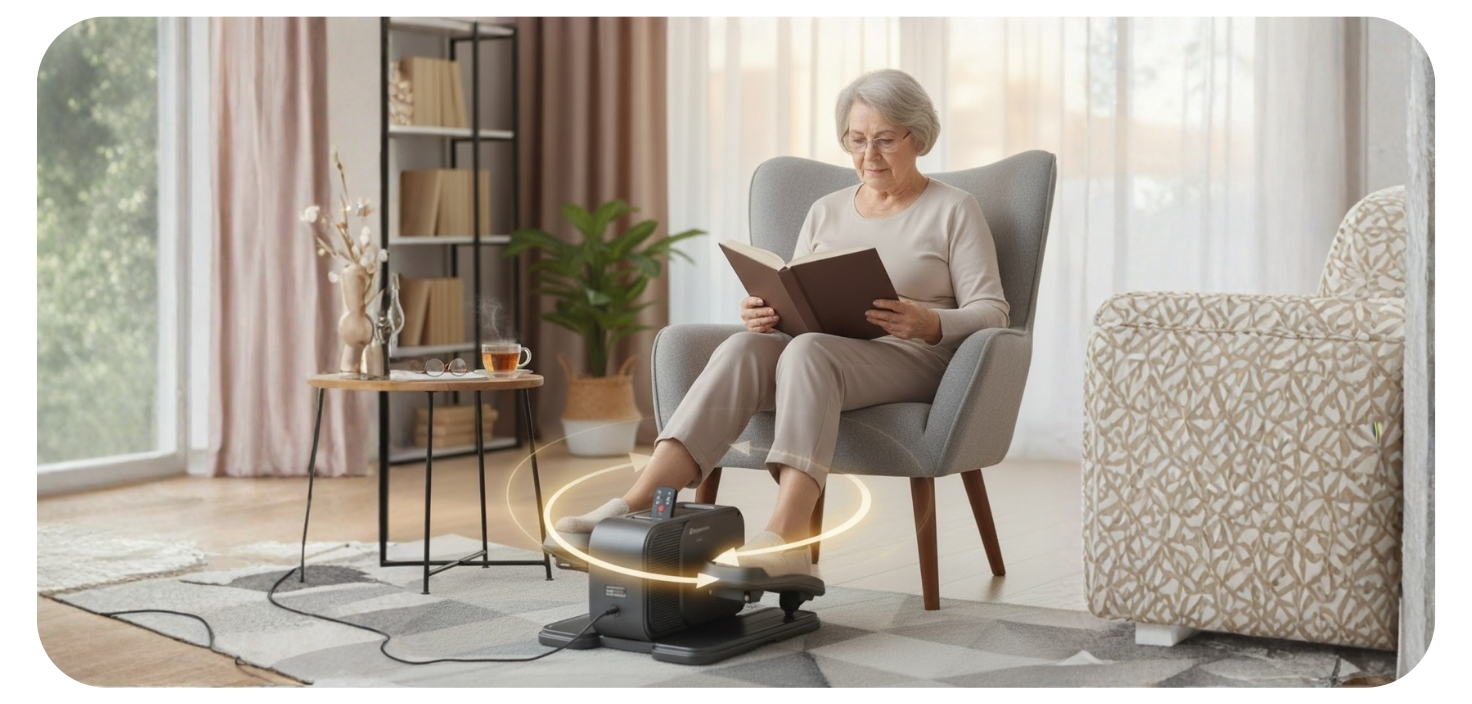 inSPORTline Elnero має сенс там, де класичні вправи неможливі. Електродвигун приводить педалі в плавний рух, так що пристрій тренується разом з вами – при цьому він обережно розминає суглоби, активує м'язи і допомагає поліпшити кровообіг в кінцівках. Ідеальне рішення для всіх, хто потребує залишатися в русі, незважаючи на обмежену мобільність.