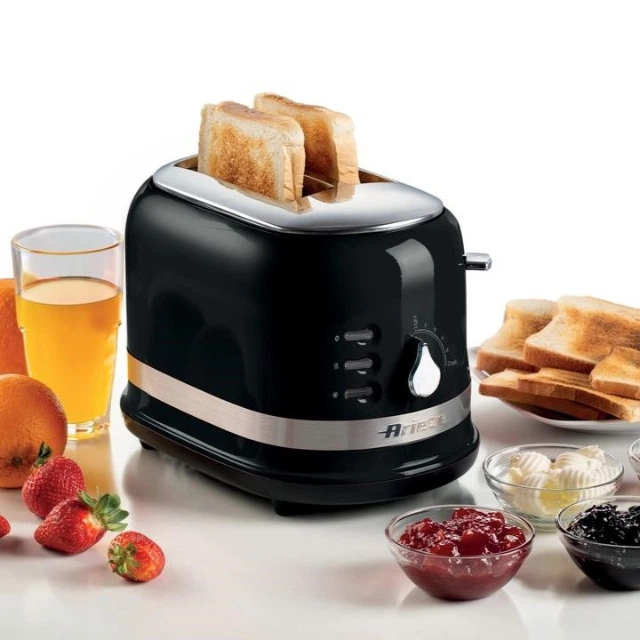 Тостер ARIETE 0149 дизайнерський тостер нової серії Moderna, що поєднує в собі естетику та функціональність, ідеально підсмажує хліб і сендвічі з начинкою завдяки потужності 815 Вт. Щоб безпечно дістати хліб, необов’язково використовувати щипці, адже тостер обладнаний автоматичним виштовхуванням скибочок, що надає змогу діставати готові тости без додаткових пристосувань, знижуючи ризик опіку або пошкодження пристрою.