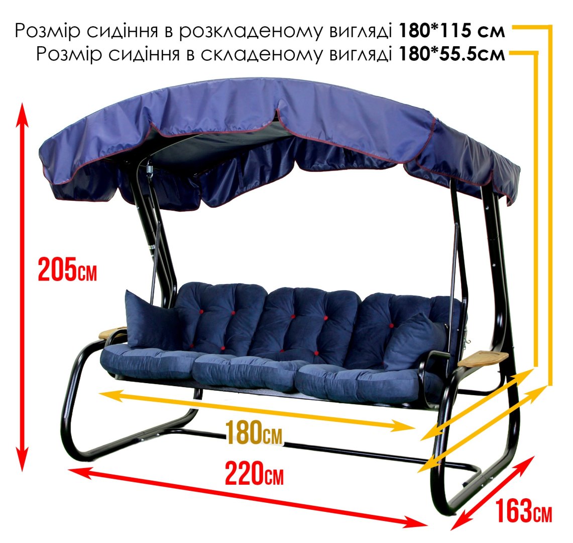 - Габарити в зібраному вигляді: 220 см × 163 см × 205 см