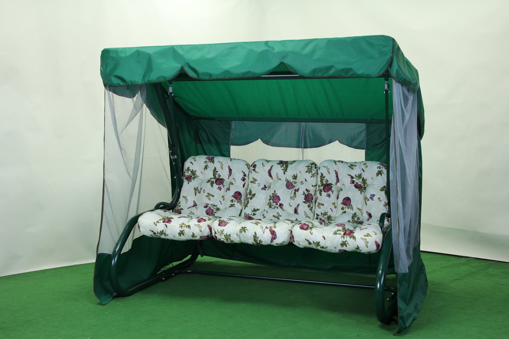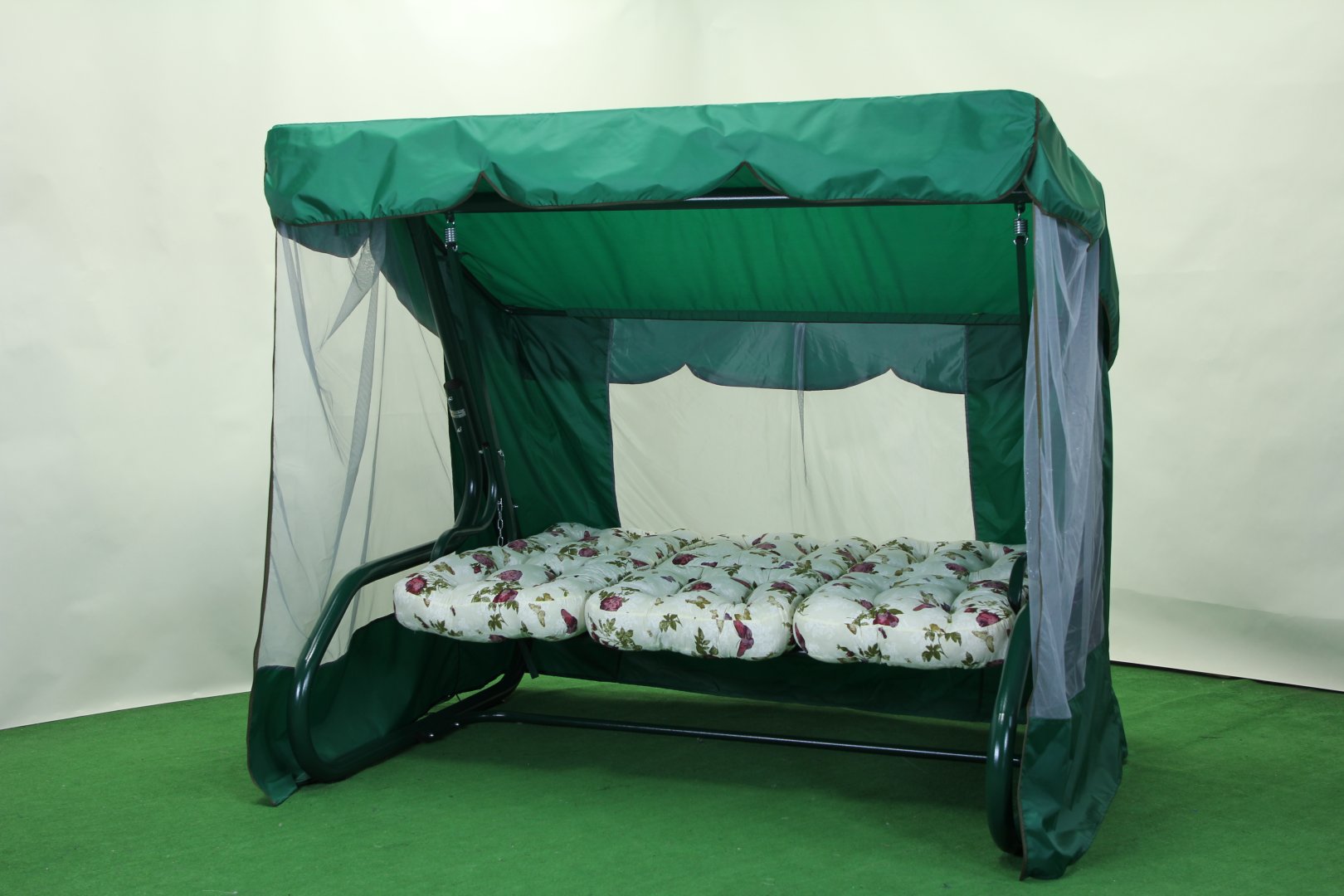 Садова гойдалка GreenGard Таїті вирізняється природною естетикою та гармонійно поєднується з ландшафтом завдяки насиченому зеленому кольору. Вона створює атмосферу спокою та легкості, роблячи відпочинок на свіжому повітрі ще приємнішим. Модель оснащена тентом і москітною сіткою, що повністю закриває каркас і забезпечує захист від сонця та комах. За потреби сітку можна підв’язати під тентом або повністю відстебнути.