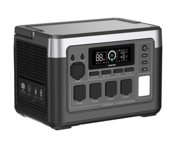 - заряджання Oukitel P1000E Plus від мережі досягає 1200 Вт, що дає змогу швидко відновити ємність;