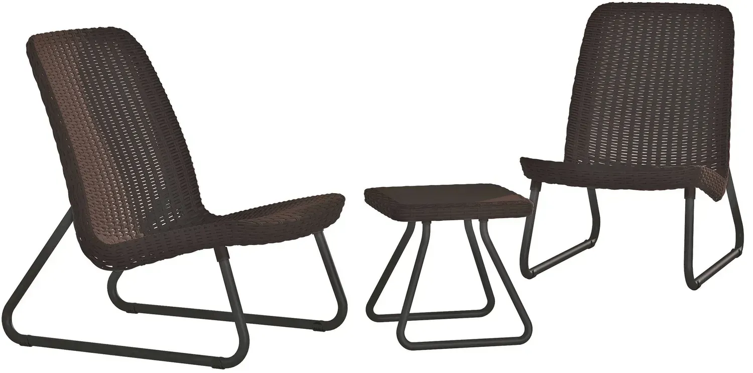 Rio Patio Set – компактний і стильний комплект меблів, який ідеально підходить для балкона чи зони відпочинку біля басейну. Набір складається з двох низьких зручних крісел та невеликого квадратного столика. Металеві ніжки забезпечують стійкість, а фактура з імітацією ротанга додає елегантності. Меблі виготовлені з міцного поліпропілену, стійкого до сонця, вологи та ударів. Легкі у догляді та прості в складанні, вони довго зберігають привабливий вигляд.