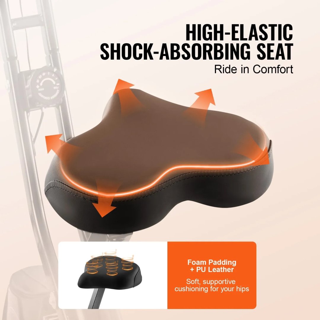 - Складаний тренажерний велосипед має міцну сталеву раму і конструкцію центру ваги у формі літери X, яка витримує значну вантажопідйомність, гарантуючи безпечне, стабільне і комфортне тренування.