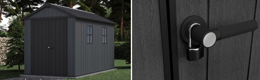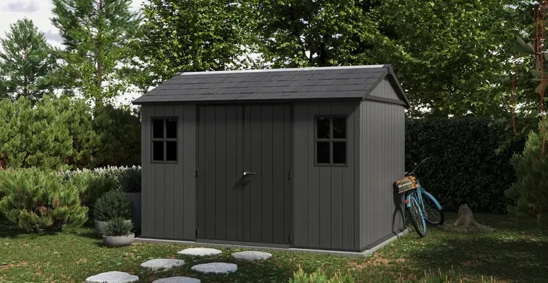Садовий пластиковий будиночок Keter Newton Plu 230 х 350 см — це сучасний та просторий садовий будиночок із модульною конструкцією, що дозволяє гнучко розташовувати двері та вікна відповідно до потреб. Він поєднує стильний дизайн із високою функціональністю, забезпечуючи комфортне зберігання інструментів, садового інвентарю, меблів чи навіть великої техніки.