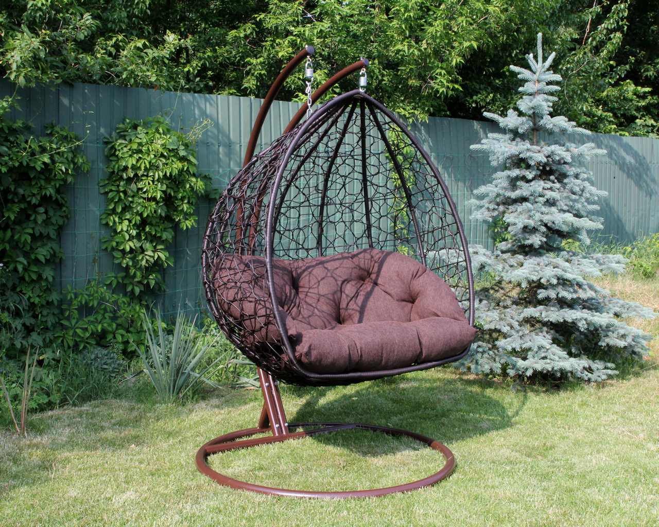 Крісло‑кокон подвійне підвісне GreenGard Венге — просторе, міцне та комфортне місце для відпочинку на свіжому повітрі. Завдяки посиленій стійці, широкому кокону та м’якій подушці воно ідеально підходить для двох осіб, створюючи затишну зону релаксу в саду, на терасі чи в альтанці.