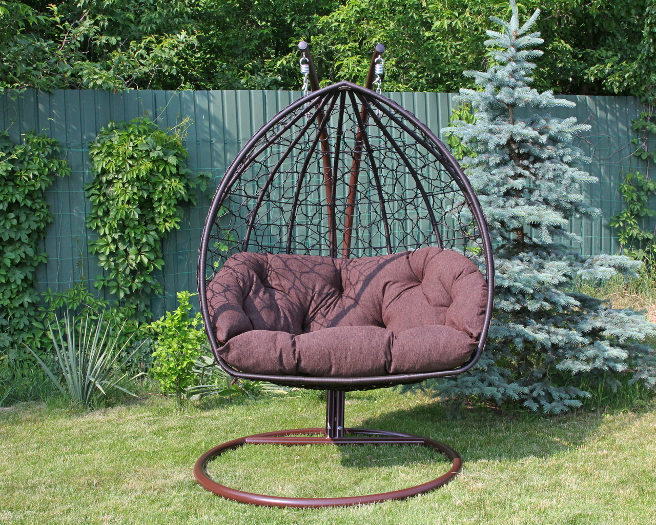 Крісло‑кокон подвійне підвісне GreenGard Венге — просторе, міцне та комфортне місце для відпочинку на свіжому повітрі. Завдяки посиленій стійці, широкому кокону та м’якій подушці воно ідеально підходить для двох осіб, створюючи затишну зону релаксу в саду, на терасі чи в альтанці.