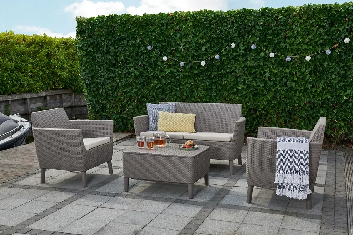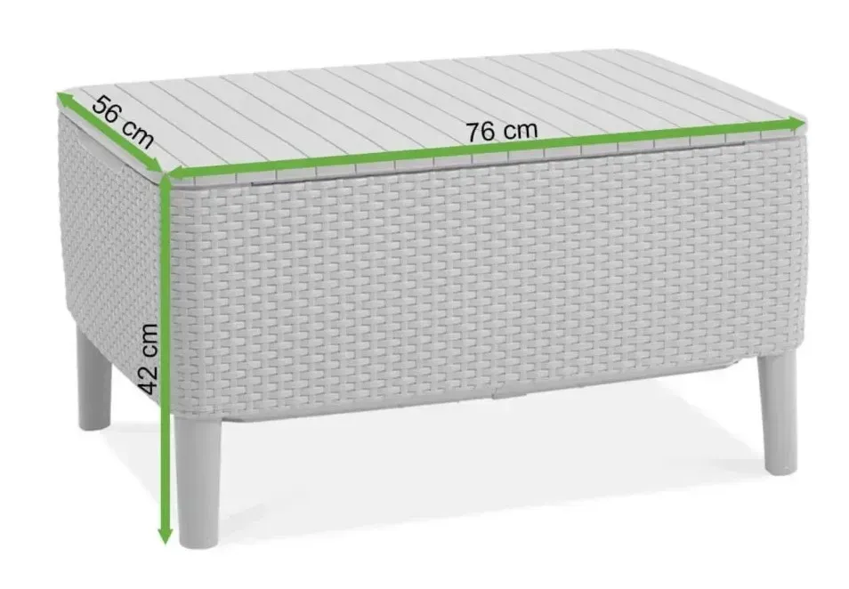 Стіл-скриня садова Keter Salemo - це стильне доповнення, завдяки якому насолоджуватися пишністю Вашого саду буде ще приємніше. Стіл має фактуру, що нагадує чудовий ротанг, і плоску фактурну стільницю, а міцна конструкція дозволить йому прослужити довгі роки.