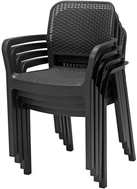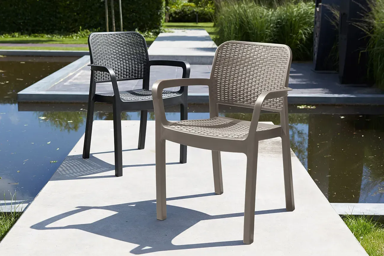 Садове пластикове крісло Keter Samanna — це поєднання класичної елегантності та практичності. Крісло має ергономічно профільовану спинку з фактурою під ротанг і міцні підлокітники, що забезпечують комфорт під час відпочинку. Завдяки високоякісному поліпропілену воно стійке до атмосферних умов та УФ-випромінювання, не вигорає і не потребує спеціального догляду.