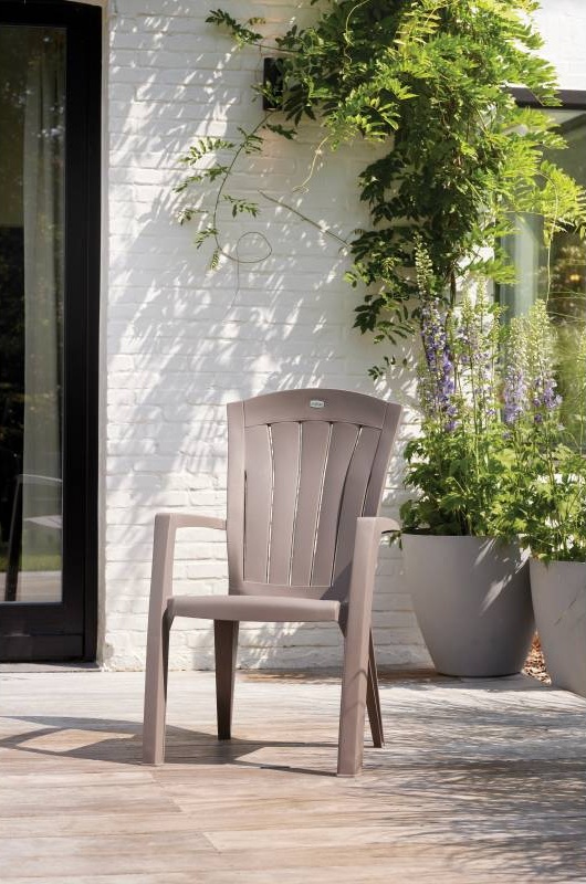 Крісло стійке до атмосферних умов та УФ-випромінювання, не вигорає на сонці та не потребує спеціального догляду. Завдяки можливості штабелювання (розміщення одне на одному) воно легко зберігається та економить простір.