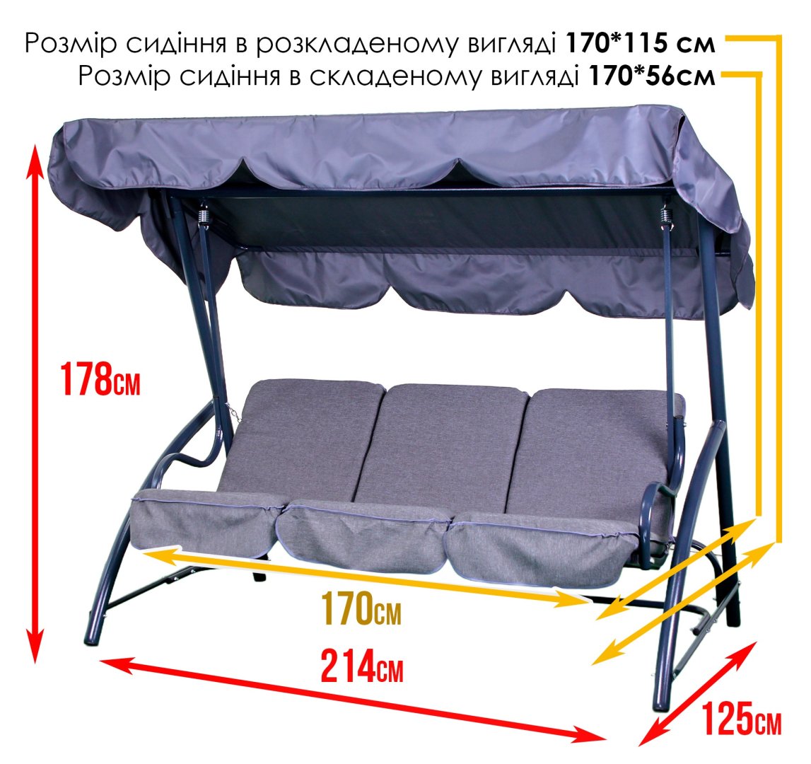 - Розмір сидіння у складеному вигляді: 170 × 56 см