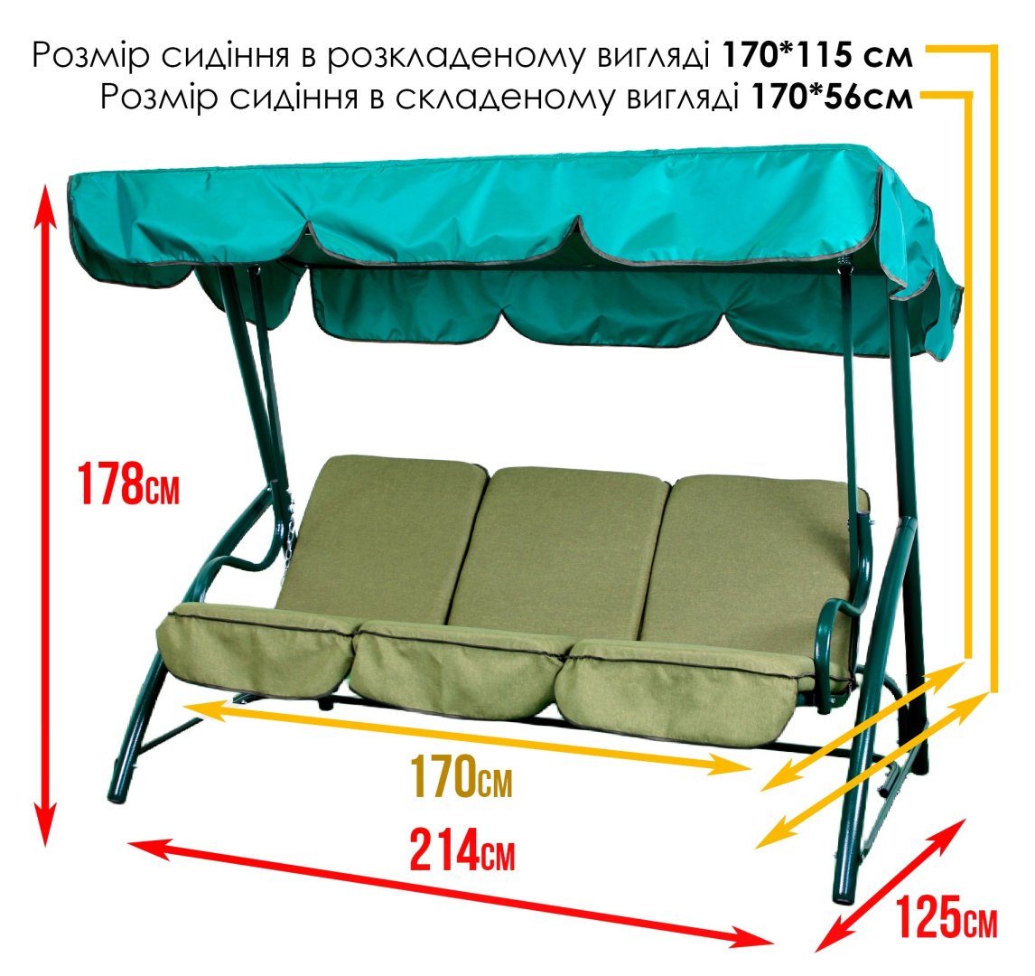 - Розмір сидіння у складеному вигляді: 170 × 56 см