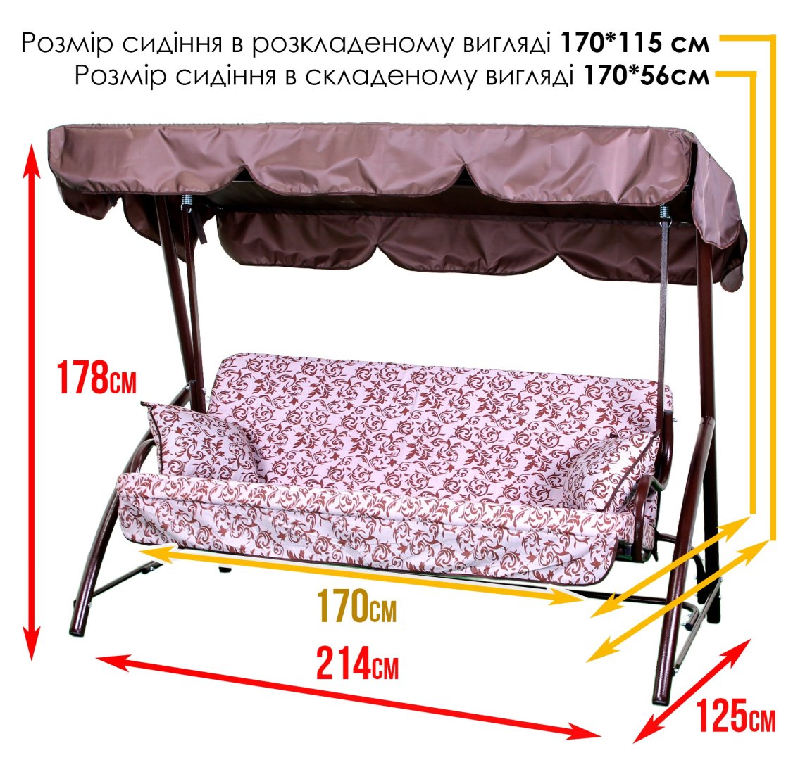 - Розмір сидіння у складеному вигляді: 170 × 56 см
