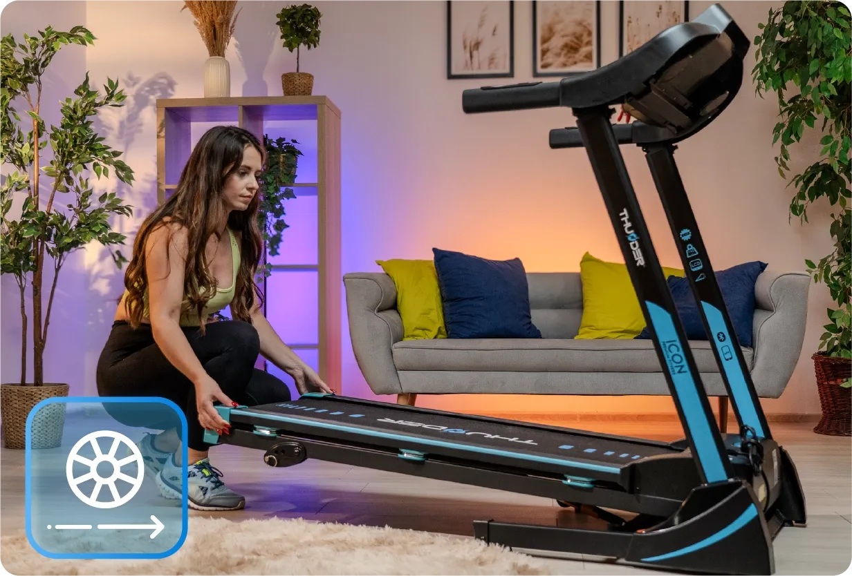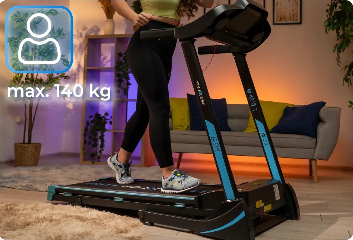 Бігова доріжка THUNDER ICON-BLUE — ідеальне рішення, яке поєднує комфорт, функціональність і сучасні технології, гарантуючи ефективне тренування щодня!