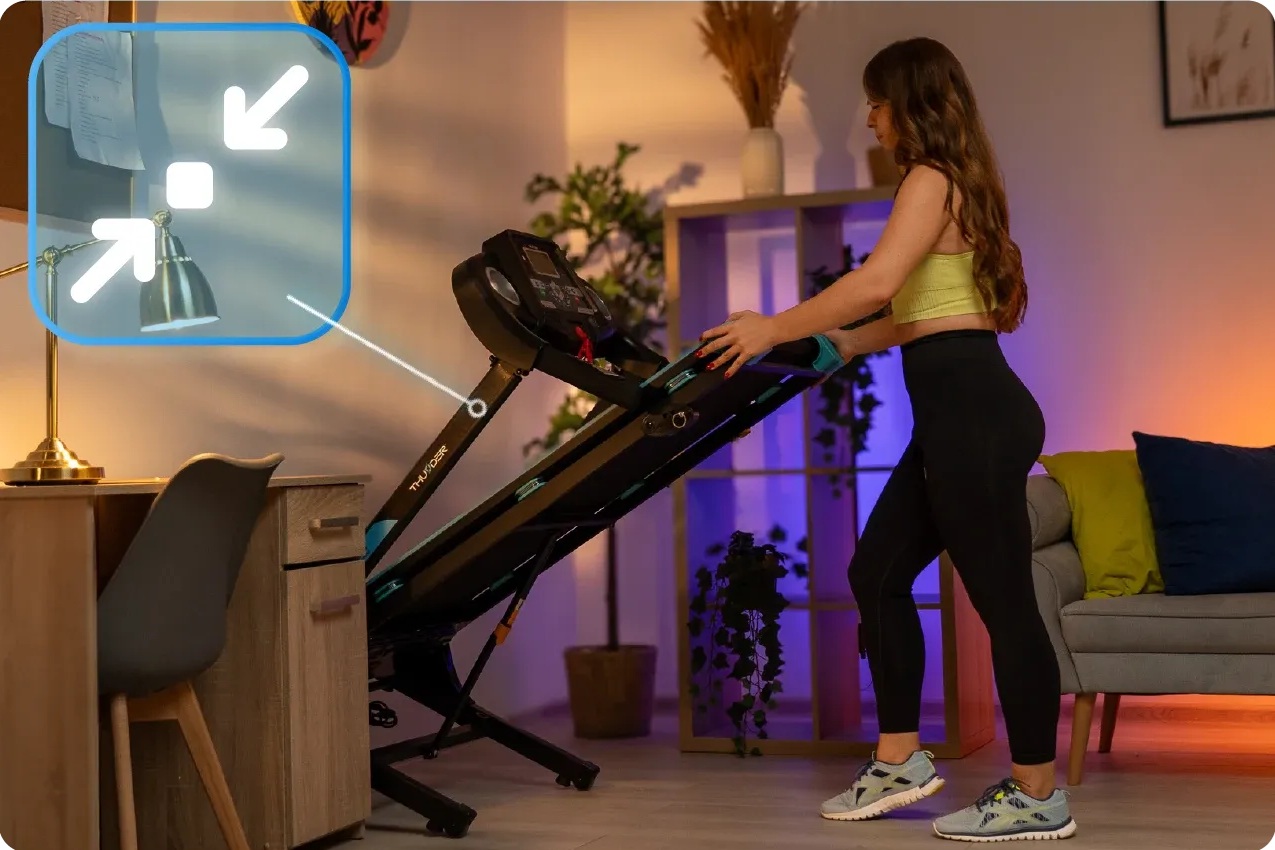 - Можливість підняття бігової доріжки у вертикальне положення - телескопічний газовий циліндр