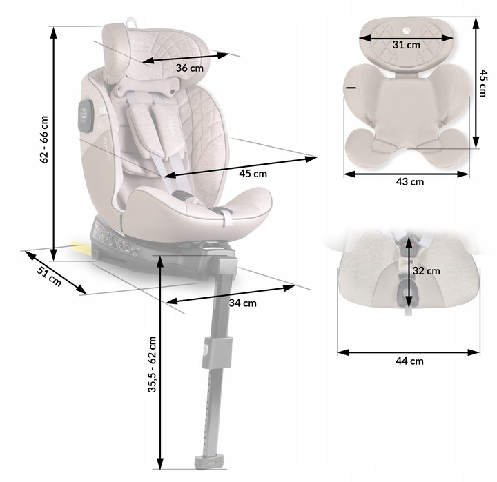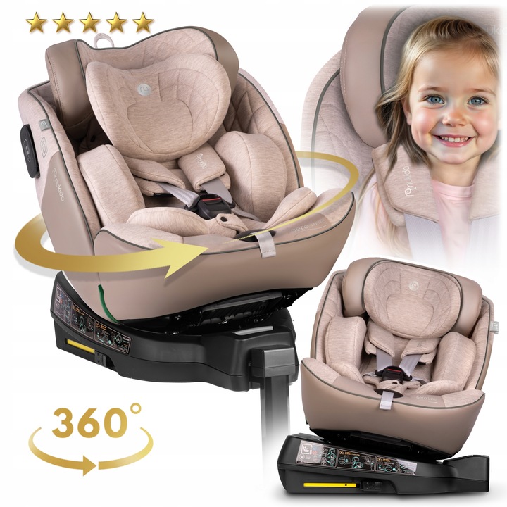 Поворотне дитяче автокрісло Nukido Aero Line ISOFIX 0-36 кг, бежеве. Безпечне автокрісло з можливістю регулювання, яке поєднує в собі всі переваги безпеки, комфорту та практичності.