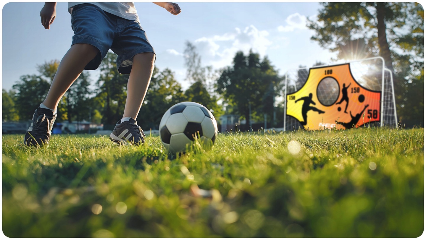 - Допомагає відпрацьовувати точність ударів у різні зони воріт