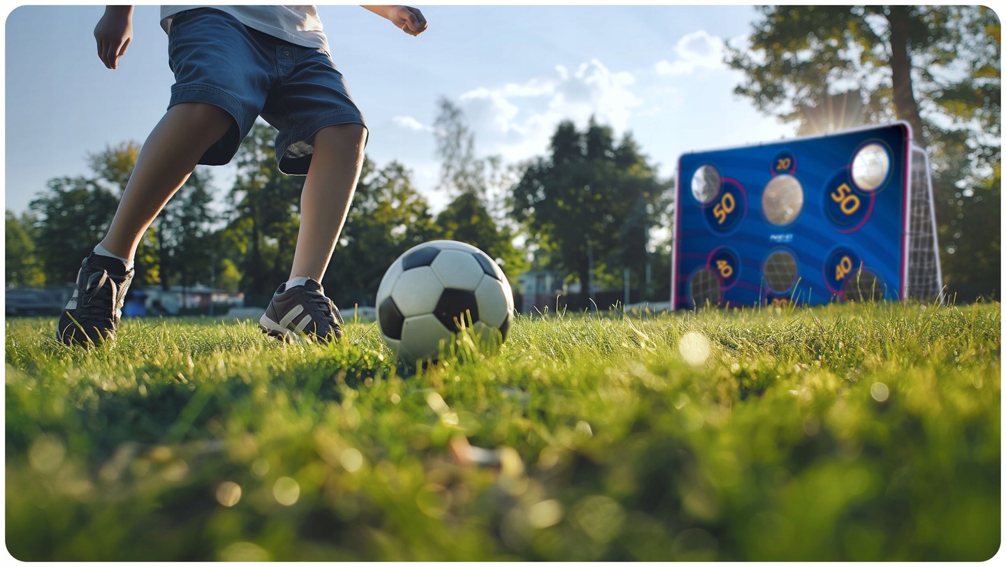- Допомагає відпрацьовувати точність ударів у різні зони воріт
