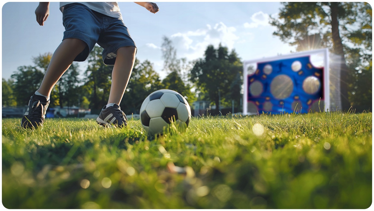 - Допомагає відпрацьовувати точність ударів у різні зони воріт