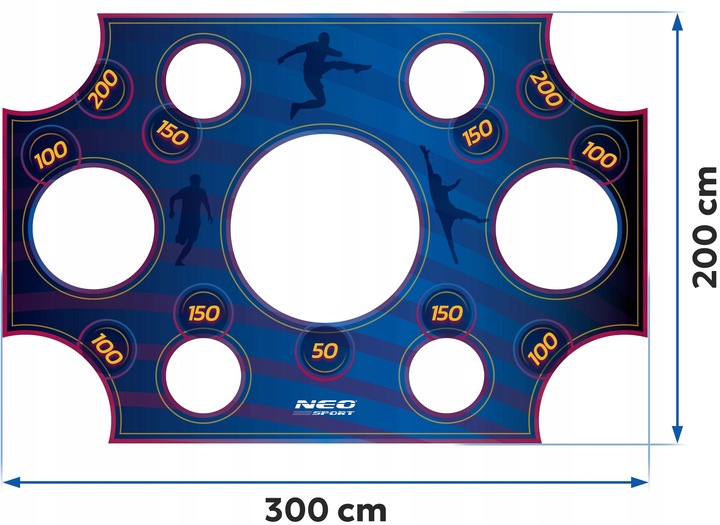Мішень для футбольних воріт Neo-Sport NS-1476 300 × 200 см — це професійний тренувальний аксесуар для великих футбольних воріт, який допомагає відпрацьовувати точність ударів у різні зони. Виготовлена з міцного водостійкого матеріалу з якісним друком, легко кріпиться завдяки еластичним затискачам і витримує навіть найсильніші удари. Ідеально підходить для воріт розміром 300 × 200 см.