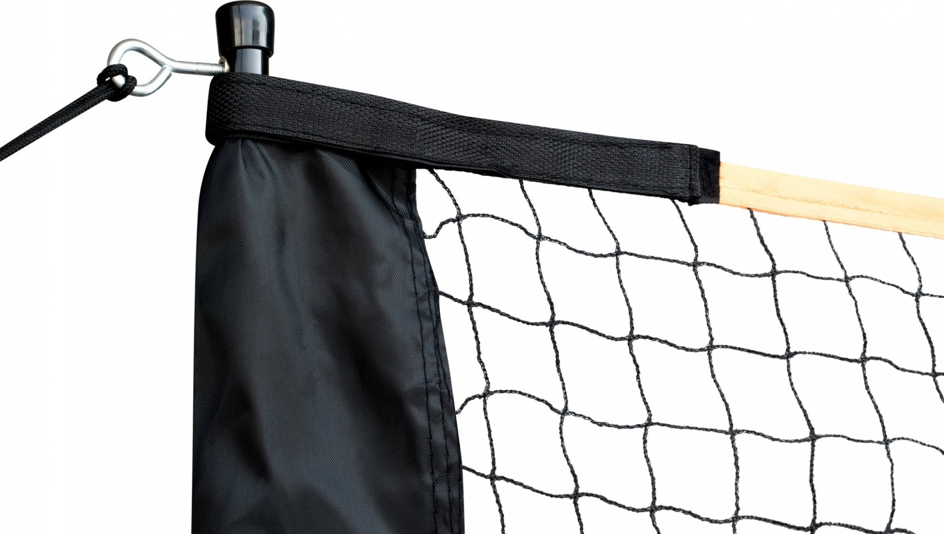 Сітка виготовлена з міцного поліестеру, а її рама – з порошкового фарбованої сталі, що забезпечує стабільність і тривале використання. Завдяки використаним матеріалам сітка стійка до різних погодних умов, що дозволяє користуватися нею цілий рік.