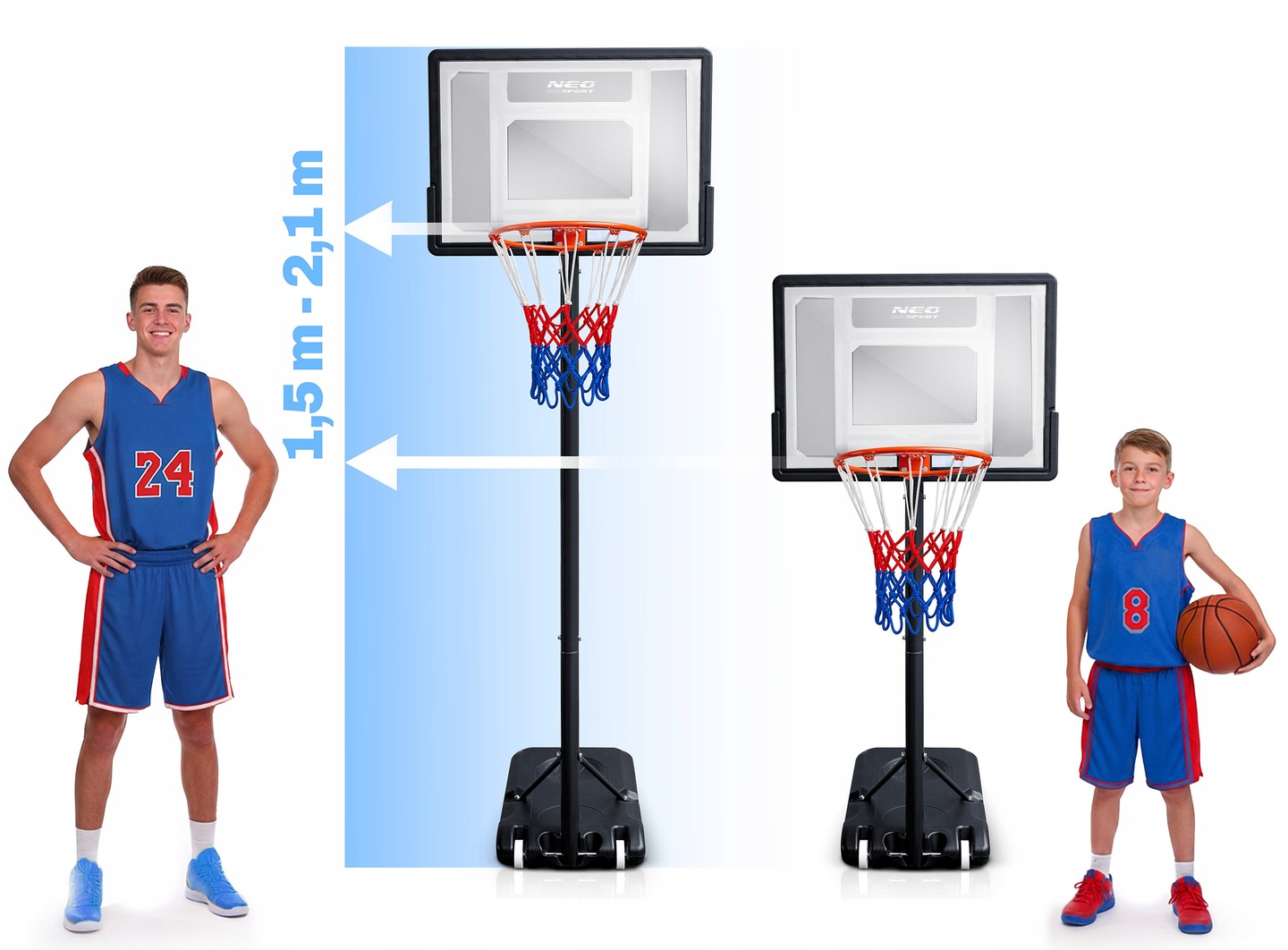 Стійка для баскетболу Neo‑Sport NS‑280 150-210 см — це сучасна, стабільна та мобільна конструкція, яка дозволяє насолоджуватися грою у будь‑якому місці: на подвір’ї, у саду чи на майданчику. Завдяки телескопічній системі регулювання висоти від 150 до 210 см він підходить як для дітей, так і для дорослих, забезпечуючи універсальність використання.