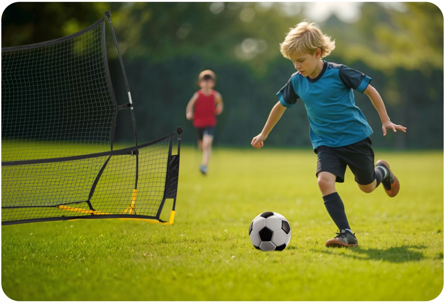 Високоякісний ребаундер має міцні сталеві стійки, які є довговічними та стійкими до атмосферних умов. Сталевий каркас забезпечує стабільність під час використання.