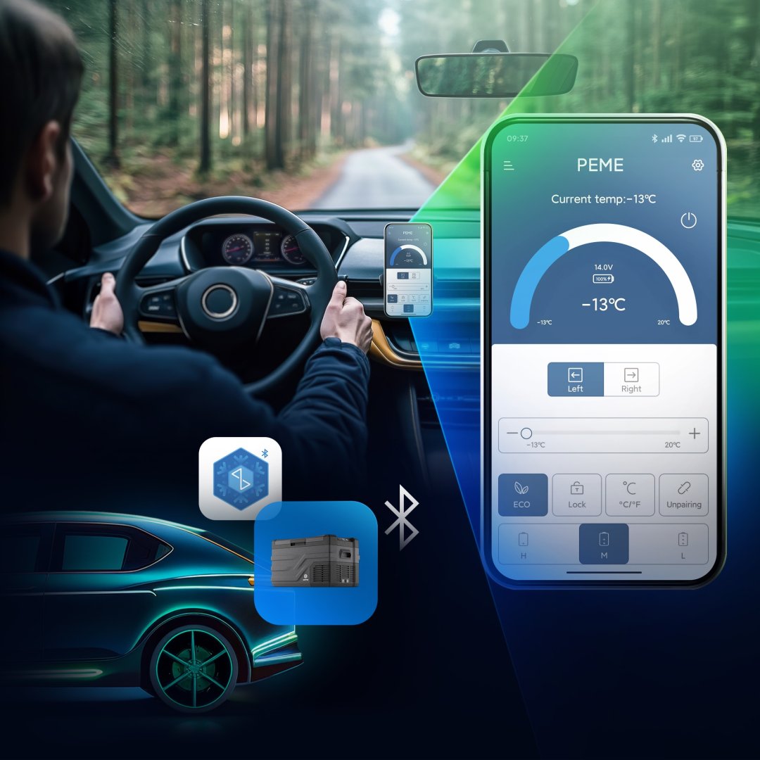 Другий спосіб керування холодильником — це смартфон. У пристрої застосовано модуль Bluetooth 5.0, а спеціальний додаток CAR FRIDGE FREEZER доступний як для систем Android, так і для iOS. Завдяки програмному забезпеченню ми можемо перевірити та змінити всі параметри з рівня телефону.