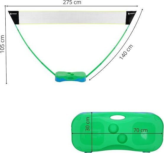 Сітка проста в монтажі, що дозволяє швидко розпочати гру. Компактні розміри набору полегшують транспортування та зберігання, завдяки чому ви можете взяти його з собою куди завгодно. Це ідеальне рішення для людей, які цінують фізичну активність на свіжому повітрі.