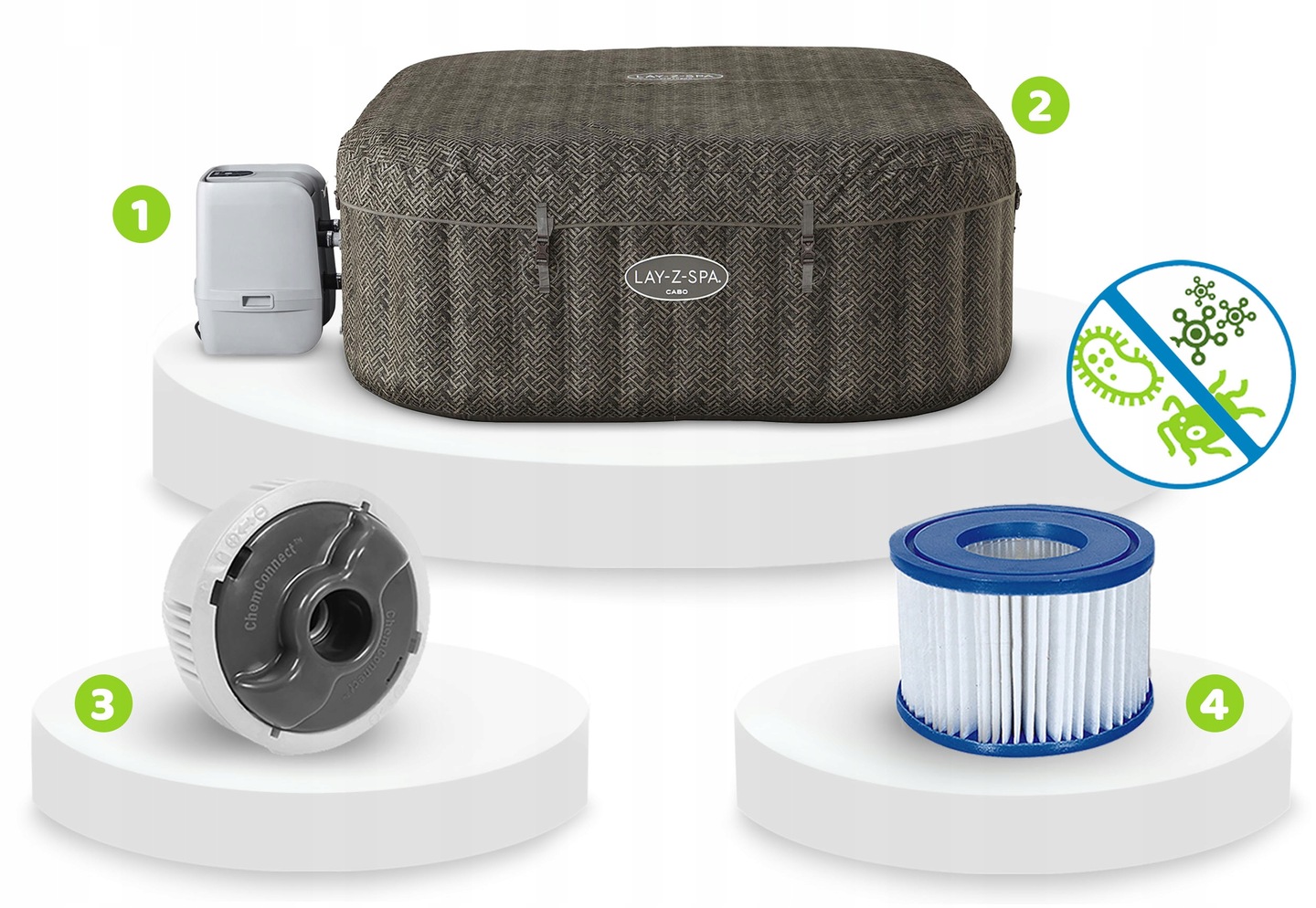 SPA оснащене системою підігріву води та гідромасажу, яка створює тисячі теплих бульбашок, що ніжно масажують тіло, знімають втому та сприяють відновленню. Використані технології гарантують довговічність, стабільність і безпеку, а також простоту догляду за водою.