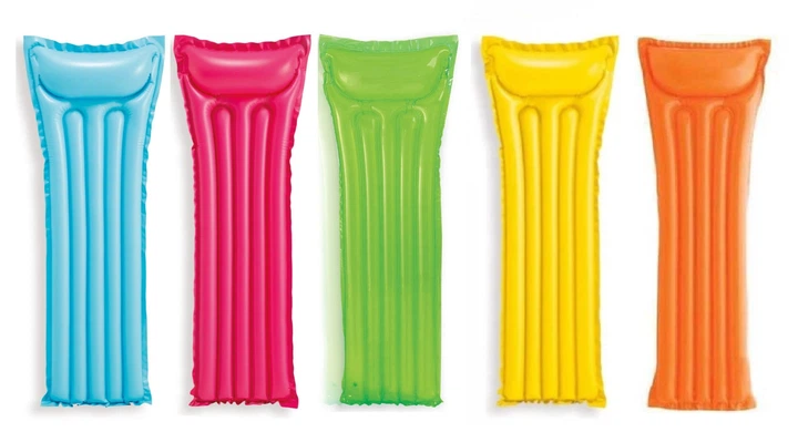 Матрац виготовлений із міцного матеріалу PVC, стійкого до сонячних променів та солоної води. Легка вага дозволяє брати його із собою на море, озеро чи до басейну. У комплекті передбачена ремонтна латка для швидкого усунення дрібних пошкоджень.