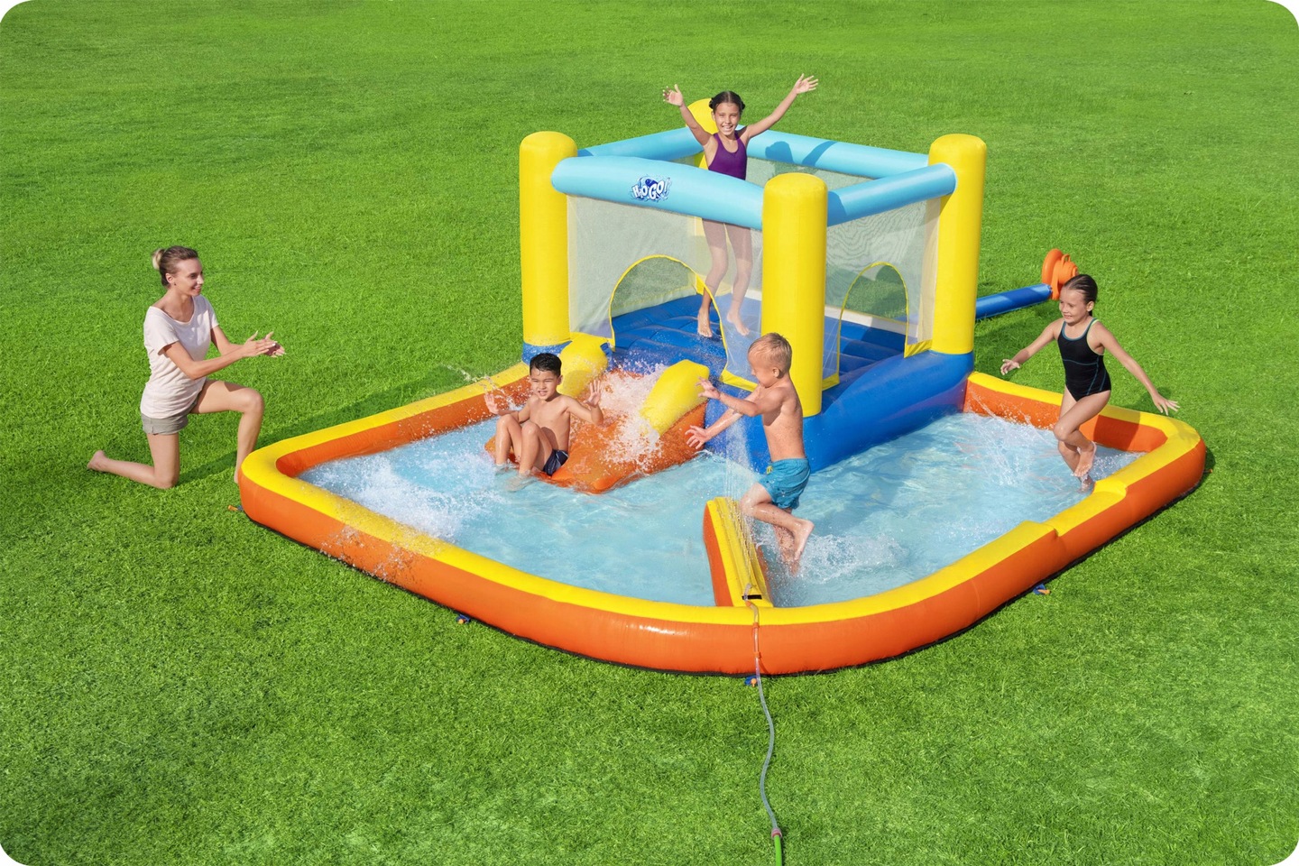Надувний ігровий майданчик Bestway Beach Bounce 53381 — це великий дитячий центр розваг, який поєднує басейн, гірку, перешкоди та надувну арену для стрибків. Він створений для активних ігор на свіжому повітрі, дарує дітям море радості та забезпечує безпечні умови завдяки міцним матеріалам і продуманій конструкції.