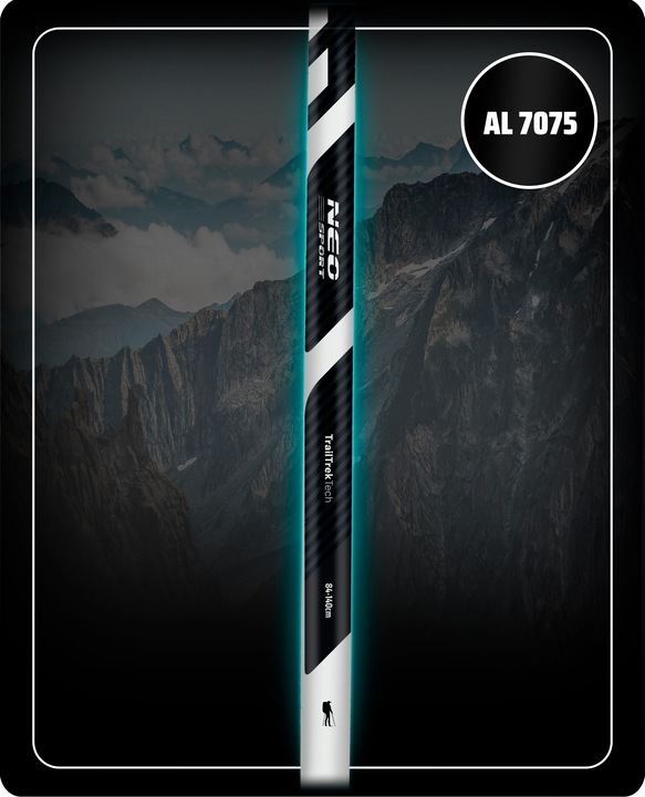 Алюмінієвий сплав AL 7075 використовується для оптимальної ваги та міцності. Вага однієї палиці становить лише 0,355 кг, що забезпечує легкість у використанні. AL 7075 є одним із найміцніших алюмінієвих сплавів, який часто порівнюють зі сталлю, тому трекінгові палиці, виготовлені з цього матеріалу, демонструють виняткову міцність навіть у складній місцевості. Незважаючи на високу міцність, алюміній 7075 залишається надзвичайно легким і стійким до корозії, що гарантує надійність під час походів у вологих умовах, під дощем чи снігом.