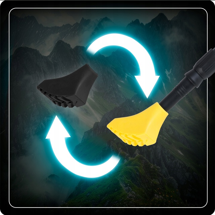 Особливістю моделі є система Click&Go, яка дозволяє швидко та без зусиль регулювати довжину та складати палиці до компактних розмірів. Завдяки змінним наконечникам вони легко адаптуються до різних умов — від ґрунтових стежок до засніжених ділянок чи асфальту. Для транспортування передбачено спеціальний чохол із ручкою, що робить комплект мобільним і практичним.