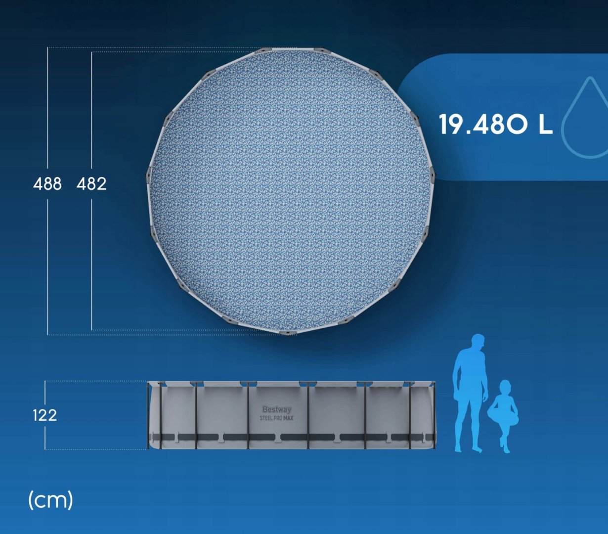 Басейн каркасний 19в1 Bestway Steel Pro Max 5612Z 488 × 122 см — це великий стелажний басейн, який забезпечує простір для плавання всією родиною. Він вирізняється міцною тришаровою конструкцією PVC Tritech, продуктивним насосом і багатим набором аксесуарів, що робить його готовим до використання одразу після встановлення.