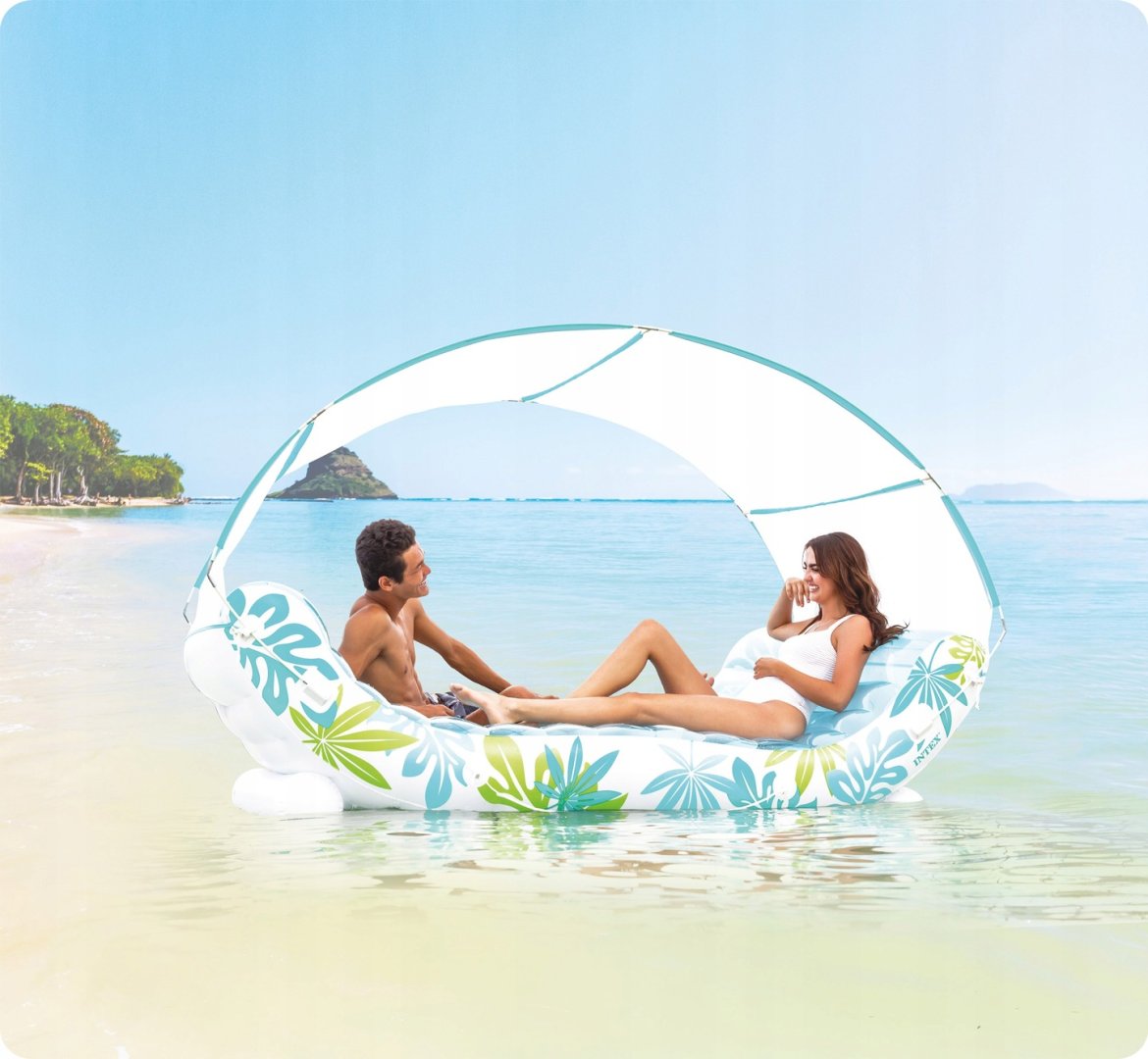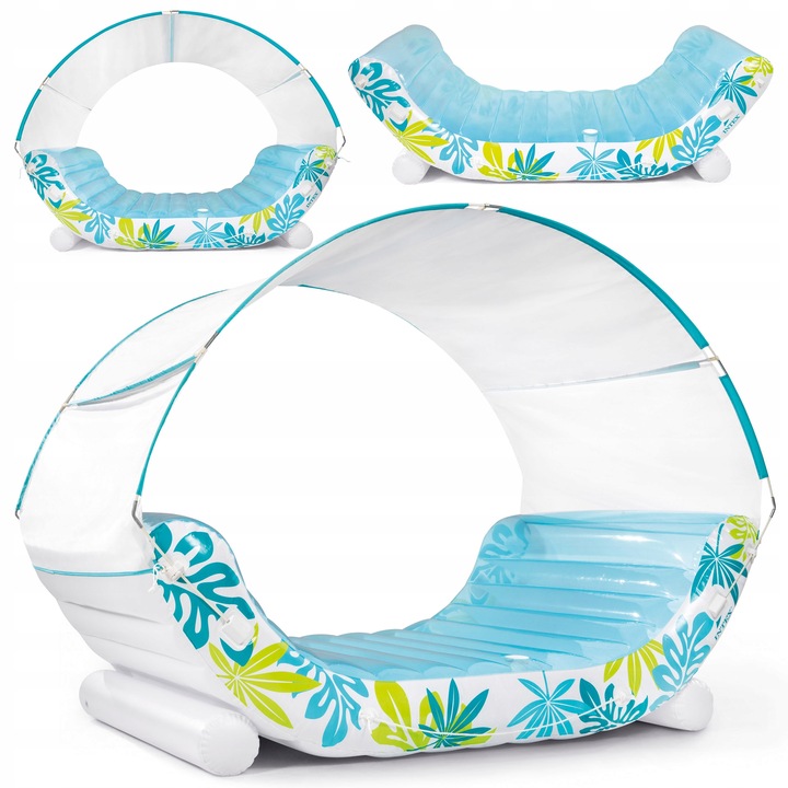 Шезлонг надувний Intex 56294 — це велика та комфортна надувна конструкція розміром 224 × 150 × 165 см, яка стане чудовим місцем для відпочинку на воді. Вона має знімний сонцезахисний навіс, зручне надувне спинка та тримає до 200 кг навантаження, що дозволяє одночасно відпочивати двом людям.