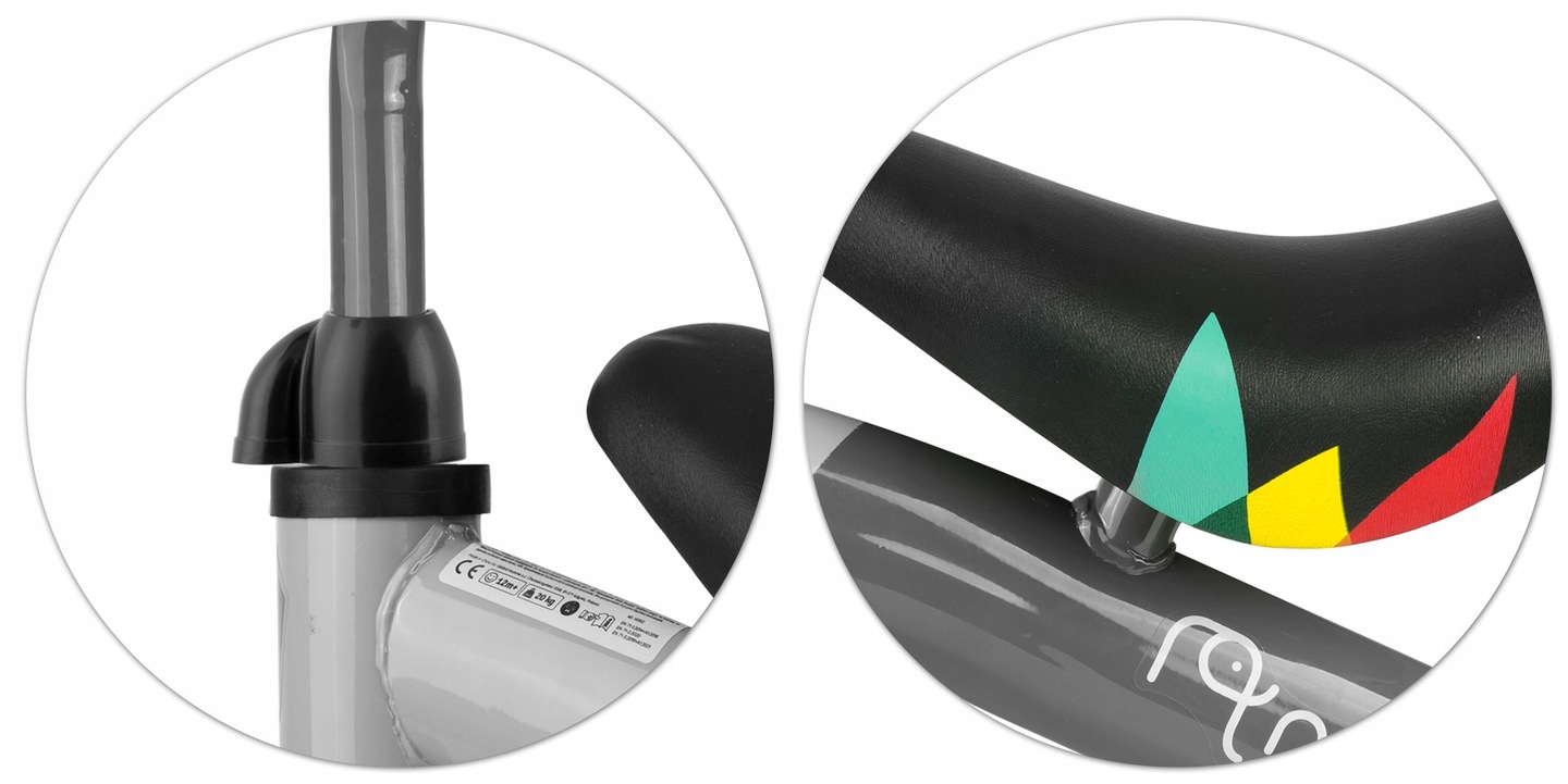 Стійкі чотири колеса допомагають дитині утримувати рівновагу навіть без досвіду катання. Закруглені краї та відсутність дрібних деталей гарантують безпеку малюка, а легка вага дозволяє самостійно маневрувати й переносити велосипед. Зручні гумові ручки зі стопорами забезпечують надійний хват, а тихі колеса не дряпають підлогу.