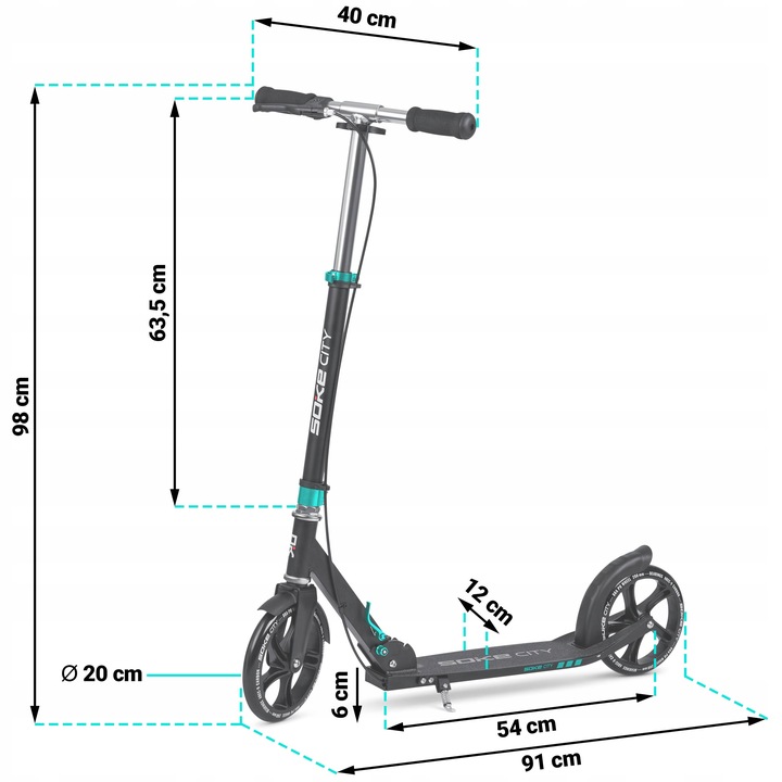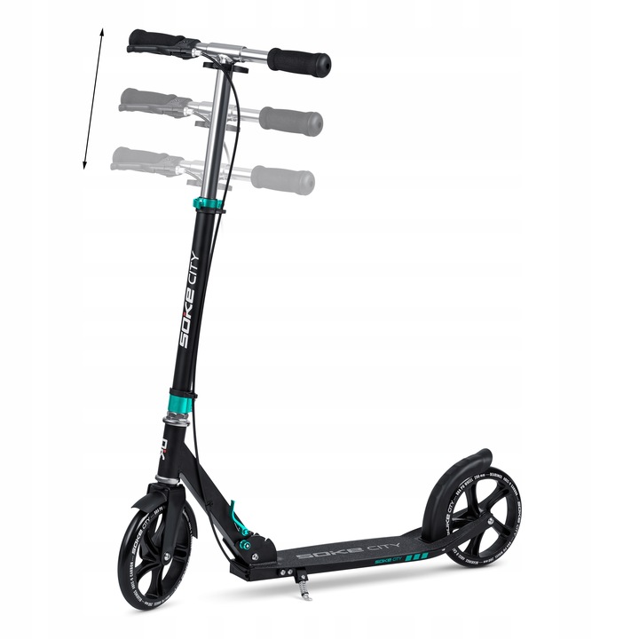 Самокат Soke City 1590— цей класичний міський самокат створений для щоденного використання у місті. Завдяки великим колесам він чудово справляється з нерівностями дороги, а легка алюмінієва конструкція робить його зручним для транспортування. Модель підходить як для дітей, так і для дорослих, витримуючи навантаження до 100 кг.