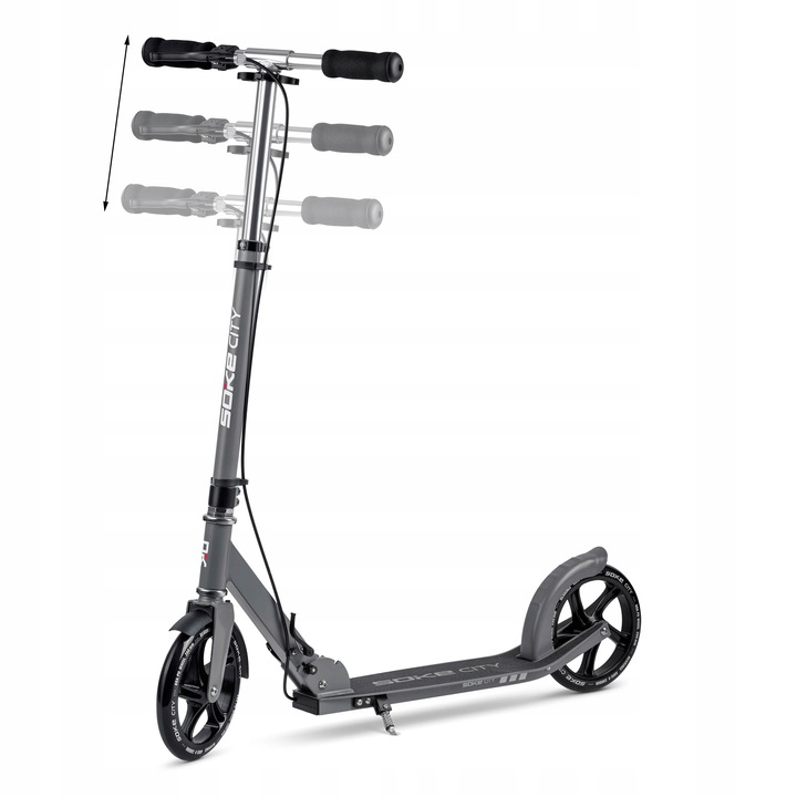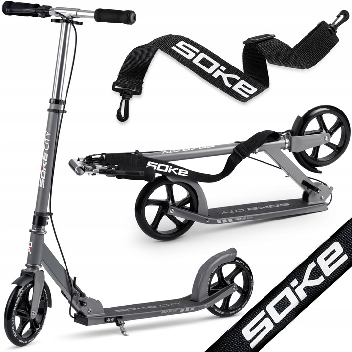 Самокат Soke City 1612 — цей класичний міський самокат створений для щоденного використання у місті. Завдяки великим колесам він чудово справляється з нерівностями дороги, а легка алюмінієва конструкція робить його зручним для транспортування. Модель підходить як для дітей, так і для дорослих, витримуючи навантаження до 100 кг.