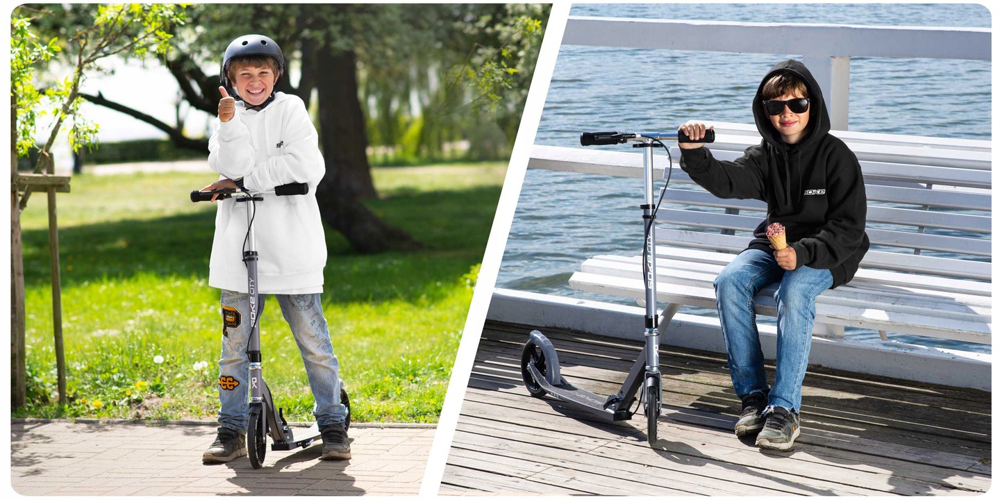 Регульоване кермо дозволяє налаштовувати висоту під зріст користувача, а складані ручки та ремінь для перенесення роблять самокат максимально мобільним. Це ідеальний вибір для поїздок до школи, роботи чи університету — він дозволяє дістатися у три рази швидше, ніж пішки, і легко поміщається у громадському транспорті.