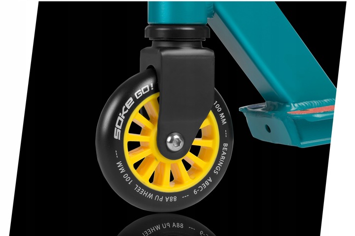 Самокат SOKE GO — це трюковий самокат, який поєднує легкість, міцність та стильний дизайн. Завдяки вазі лише 2,9 кг він надзвичайно маневрений і слухняний, що робить його чудовим вибором для тих, хто хоче впевнено відпрацьовувати трюки у скейтпарку чи на міських вулицях. Одночастинний алюмінієвий дек (48 × 10 см) витримує серйозні навантаження, а залізна вилка та кермова труба додають міцності й контролю. Система компресії HIC забезпечує плавність руху та стабільність, а колеса PU 100 × 24 мм з нейлоновим сердечником гарантують швидкість і точність.