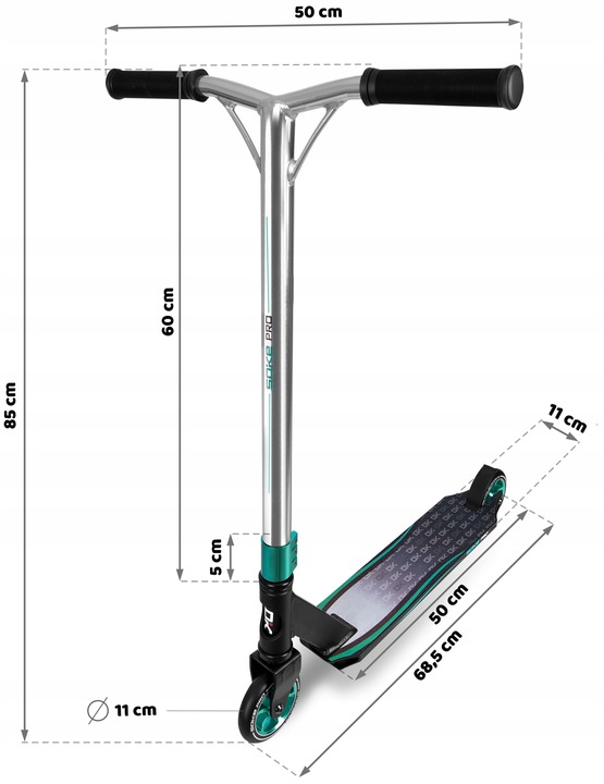 Ця модель підходить як для початківців, так і для досвідчених райдерів, витримуючи навантаження до 100 кг. Широке кермо Y‑BAR 360° (50 см) з м’якими грипами TPR забезпечує комфортний хват, а стильне срібно‑бірюзове забарвлення додає індивідуальності та сучасного вигляду. Самокат створює відчуття драйву й натхнення, дозволяючи впевнено відпрацьовувати нові елементи та насолоджуватися катанням щодня.